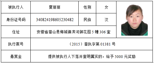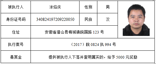 如举报人能够提供被执行人的下落,或者被执行人隐匿、转移的财产线索经查属实,使得案件得以执行的,按照申请人的承诺支付奖金,奖金由中国人民财产保险股份有限公司潜山支公司在保险限额内支付。被执行人已被人民法院发现的财产不属于悬赏范围。