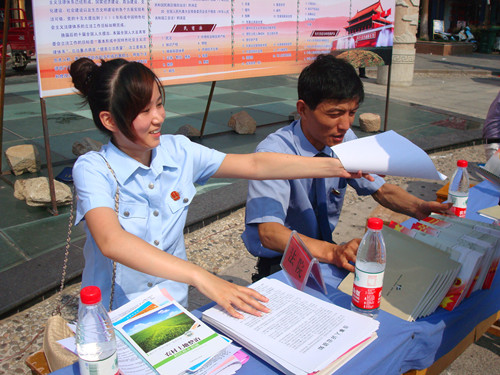 2013年3月18日法院进社区开展法律宣传(余卫民摄)