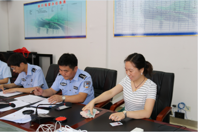 6月15日上午,bet36365真正的官网集中发放涉农民工工资执行款,执行款项发放前,执行局干警认真核对、确认当事人身份信息、清点应发工资款,有条不紊地为当事人办理领款手续。17位农民工激动领取被拖欠长达四年之久的劳动薪酬共计32万余元。