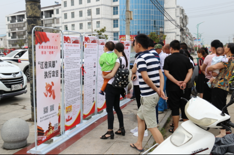 “江淮风暴”执行攻坚战法治宣传活动则选在了人流量较大的黄铺镇党群服务中心门前广场同步开展。活动现场,设立了六块宣传展板,内容包括潜山法院最新一批失信被执行人名单、悬赏公告、执行法律常识等,法院工作人员向过往群众发放法律宣传资料,上面均印有潜山法院“执行110”举报电话和潜山执行公众号二维码,通过广播循环播放《bet36365真正的官网关于敦促被执行人自觉履行义务的通告》,深入普及拒不执行生效判决、裁定应负的法律责任等相关法律知识。