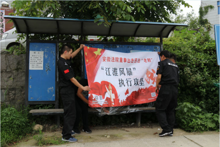 一场夏雨也阻挡不了群众的热情,“江淮风暴”挺进乡镇法治宣传活动依旧与“猎赖”行动同步推进,槎水镇党群服务中心门前广场,宣传展板从搭建开始就吸引了众多群众驻足,干警们向过往群众发放了执行法律常识宣传三合页,很多群众纷纷表示已经在电视上了解到了法院正在进行的依法严惩“老赖”的专项行动并表示支持,“江淮风暴”执行攻坚战已经深入人心,成效日益凸显。